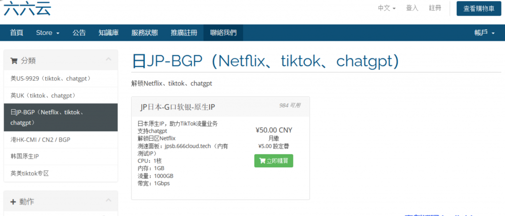 六六云日本软银(原生IP)