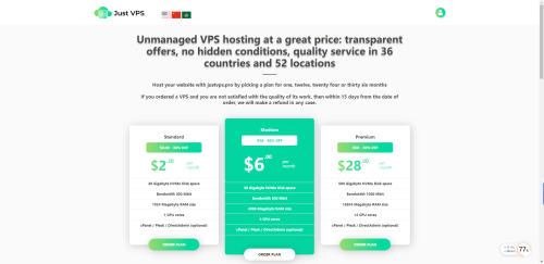 justvps隶属于阿联酋BFB ONE FZ-LLC公司,主营中国香港、美国洛杉矶、达拉斯、亚特兰大、纽约、芝加哥、西雅图、俄罗斯莫斯科Dataline、莫斯科Fiord、圣彼得堡、新西伯利亚Rostelecom、新西伯利亚TTK、荷兰阿姆斯特丹、英国伦敦、德国法兰克福、芬兰、土耳其伊斯坦布尔、乌克兰基辅、意大利、拉脱维亚、波兰华沙、西班牙马德里、法国巴黎、加拿大多伦多、保加利亚索菲亚、挪威、瑞典等机房的VPS业务,全部KVM虚拟化、无限流量,可随意换IP和机房,支持支付宝、Paypal、外币新用户和主流加密货币。